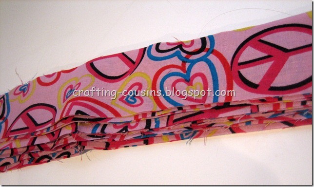 Don’t do that. It makes it so much easier to just slide it under the black blade thing. Then, you can sew at different parts of the fabric, instead of the very edge. You’ll see in the next pictures the ones that are done on the edge and the ones that are more in the middle… I used a stack of scrap fabric, all cut to the same size, to show you the different settings…