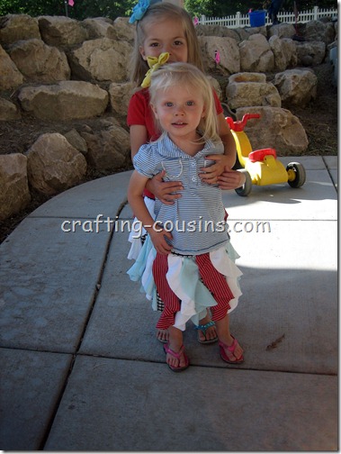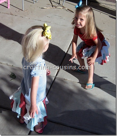 Whoa, kind of a scary face from number one, huh? The skirts turned out a bit big. I made #1’s the same size as Lil Blue Boo’s and it was probably about a 5T. I made #2’s smaller, just guesstimating, and it’s probably the right size for #1, so 3-4T. I have them safety pinned on them right now, so these bad boys will fit for a few years, at least!