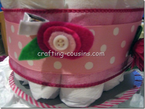 Well, diaper cake. Alyssa makes diaper cakes, trikes, and motorcycles for all her friends, so I made her one. I used this tutorial here to get started.